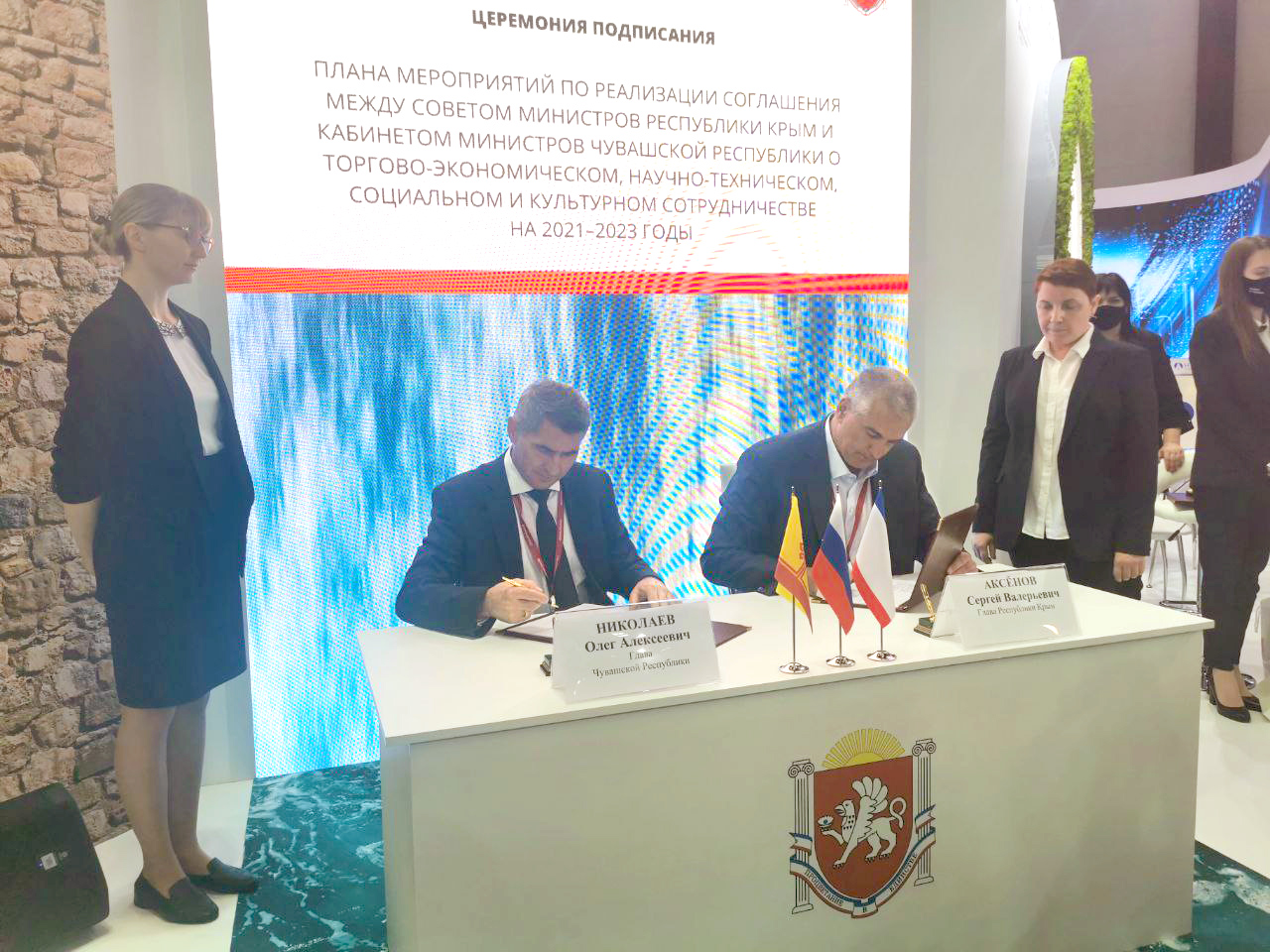 Кроме того, Глава Чувашской Республики Олег Николаев и Глава Республики Крым Сергей Аксёнов утвердили трехлетний план мероприятий по реализации ранее принятого соглашения о торгово-экономическом, научно-техническом, социальном и культурном сотрудничестве.